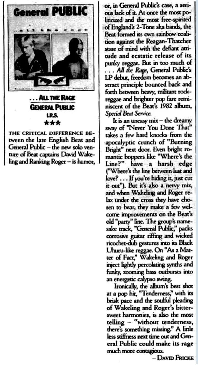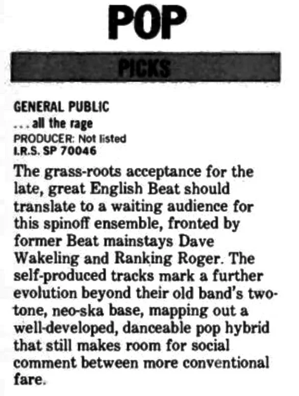 THE VIBE: GENERAL PUBLIC’S “ALL THE RAGE” ALBUM