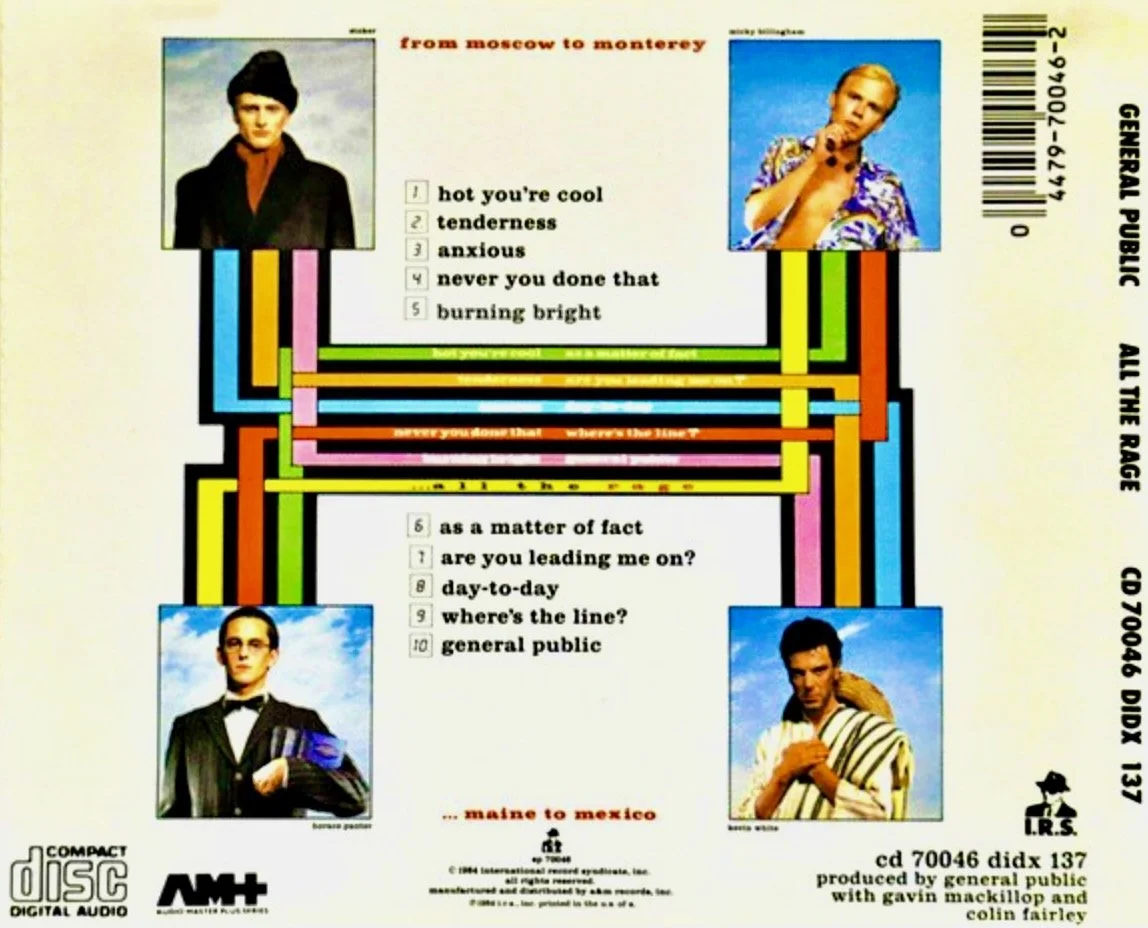 The spring of 1994, I was fourteen years old and in my freshman year of high school. I don’t know how I came across General Public’s 1984 album All the Rage, because it was a decade past its release and therefore not exactly something my local record store would have been promoting at the time. But I do remember that entire spring, I made it my “getting ready” music in the morning, before school. I have extremely vivid memories of brushing my hair at my vanity mirror in my bedroom, while the album played on my CD boom box behind me. It was a very specific vibe, that album: bright and sunny and bouncy. I know it sounds cheesy to say, but that spring seemed super sunny because I was listening to General Public first thing in the morning.